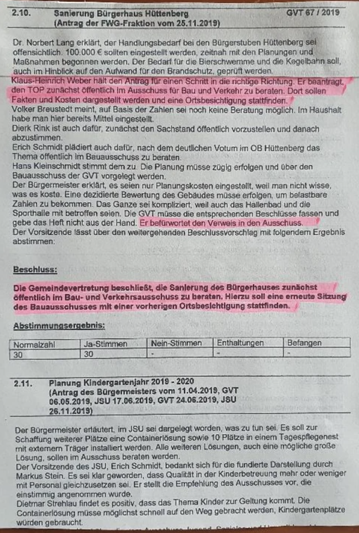 Wie schon angekündigt, habe ich beantragt, vor Beginn der Sanierungsarbeiten eine öffentliche Sitzung des Bauausschusses zur Sanierung „vor Ort“ im Bürgerhaus durchzuführen.